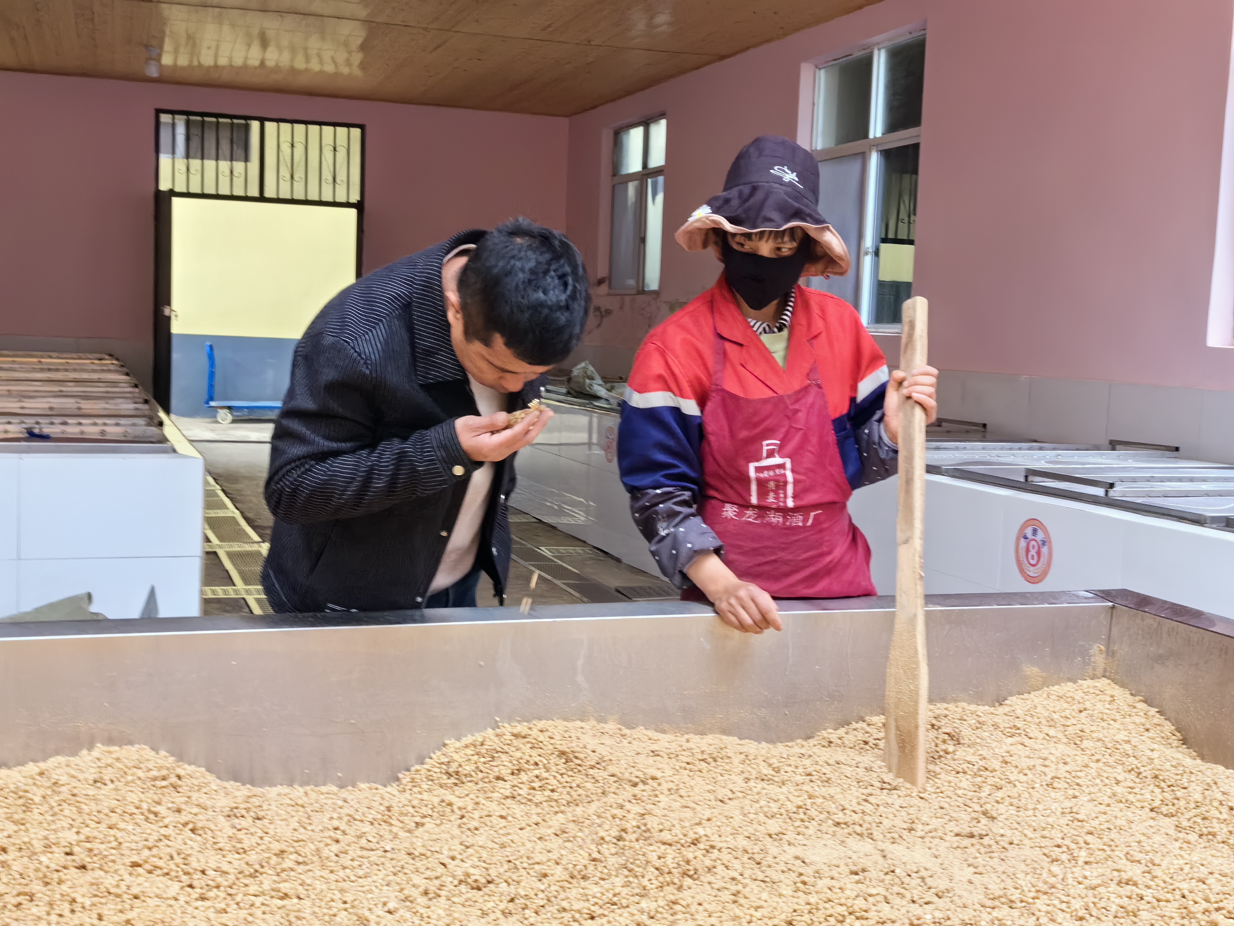 每天早晨,工人們按時來到維西尚良聚龍湖酒廠忙碌起來,蒸糧、餾酒、灌裝……現(xiàn)場一派熱火朝天的景象。酒廠負責人施尚志奔走在各個生產(chǎn)車間,不時指導工人工作,叮囑工人注意安全。