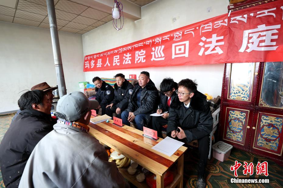 瑪多縣地處黃河源頭,是黃河發(fā)源后流經(jīng)的第一個縣城。瑪多平均海拔超4500米,是青海省海拔最高的縣,也是人類生存環(huán)境最惡劣的地區(qū)之一,加上地廣人稀,交通不便,法官調(diào)查取證難、送達難,農(nóng)牧民參與訴訟難。1957年,瑪多縣人民法院成立之初就成立了“馬背法庭”。巡回法庭的的法官經(jīng)常帶著干糧,騎著馬找到當事人,就地審理案件。