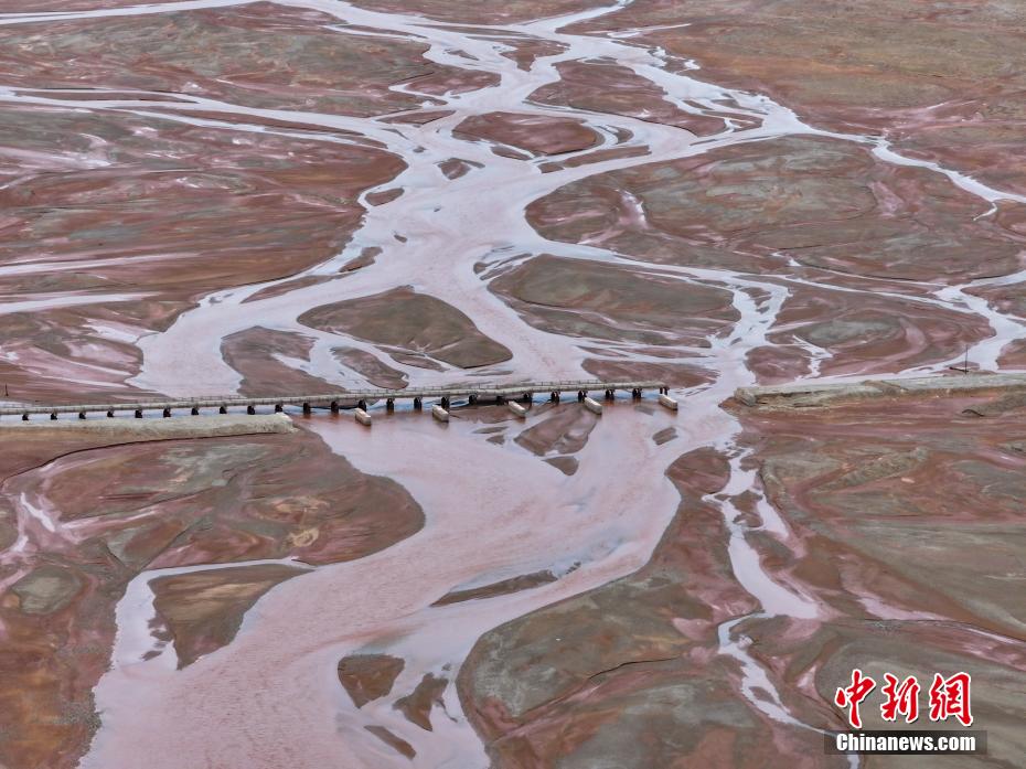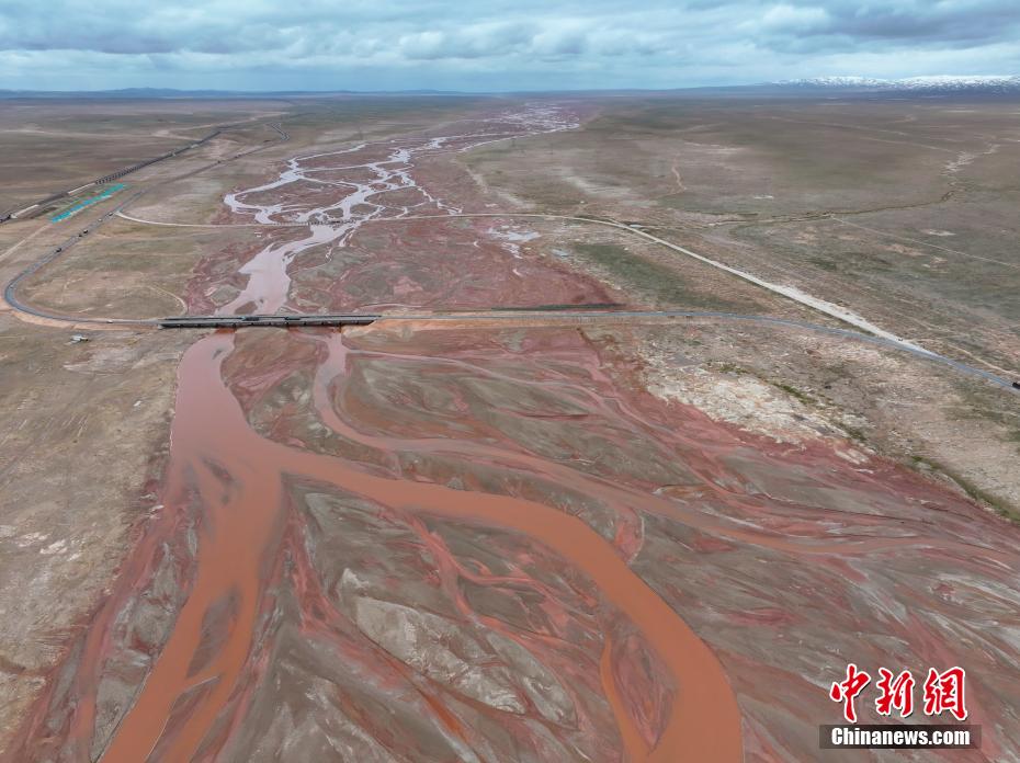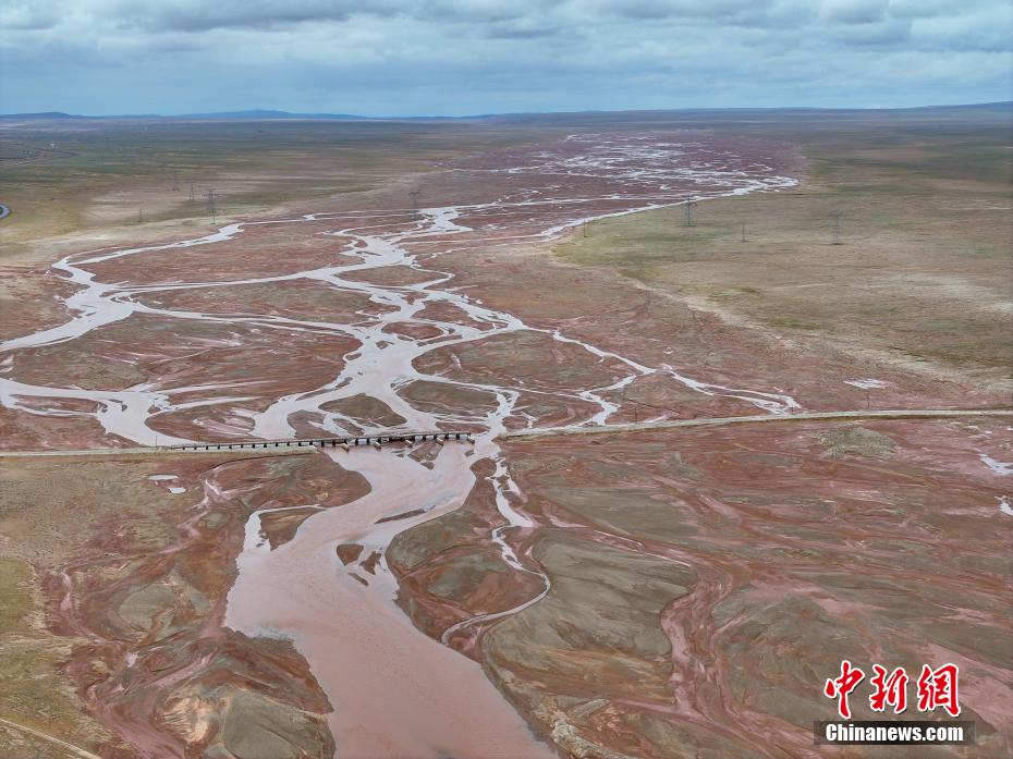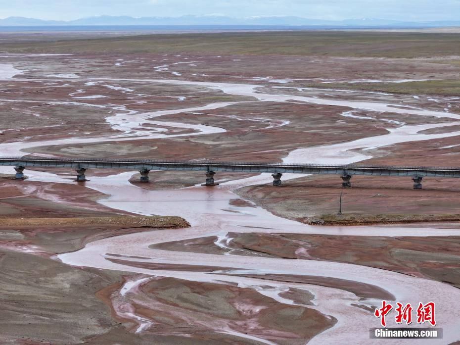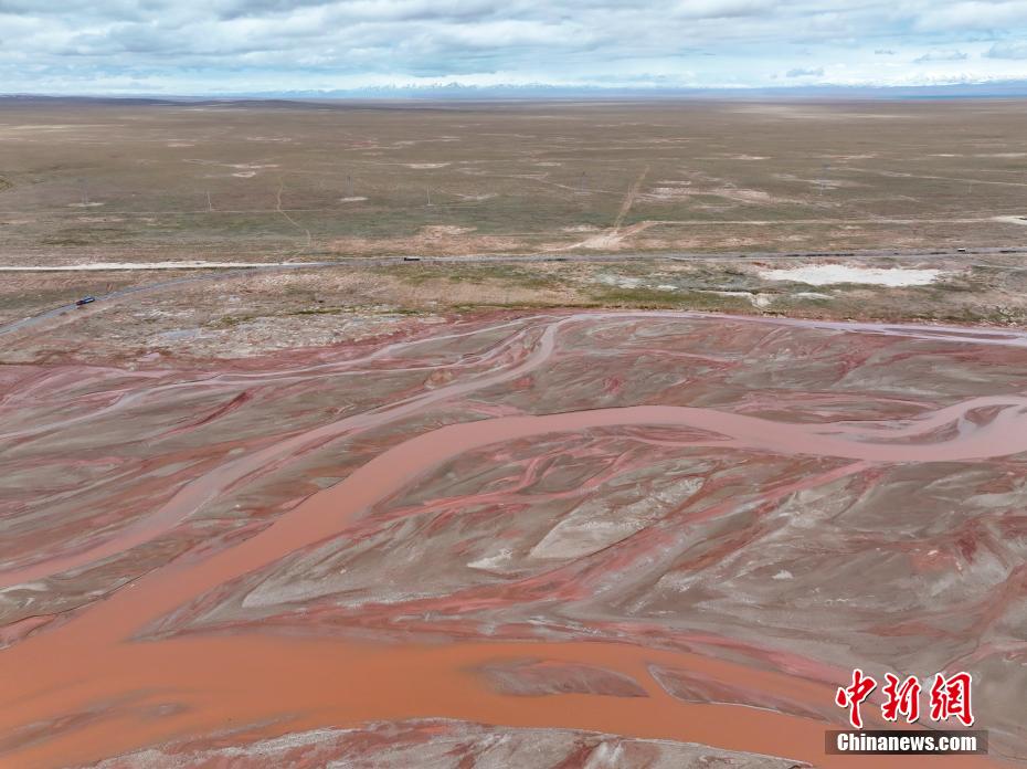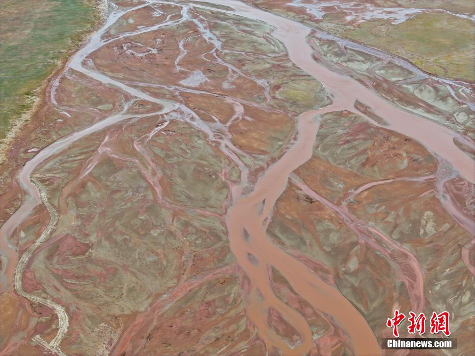 6月20日,航拍青海省玉樹(shù)藏族自治州曲麻萊縣境內(nèi)的楚瑪爾河。長(zhǎng)江北源楚瑪爾河地處三江源國(guó)家公園內(nèi),河水偏紅如大地血脈。(無(wú)人機(jī)照片)中新社記者 馬銘言 攝