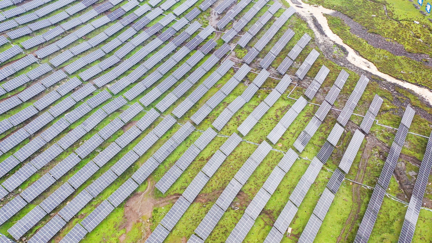 6月20日,海拔4200多米的高山遠(yuǎn)牧點,一群群牦牛悠閑地吃著嫩綠的青草,不時發(fā)出“哞哞”的叫聲。五六米之外,就是一排排藍(lán)色太陽能光伏板整齊排列,幾十個工人穿梭其中忙著巡檢。