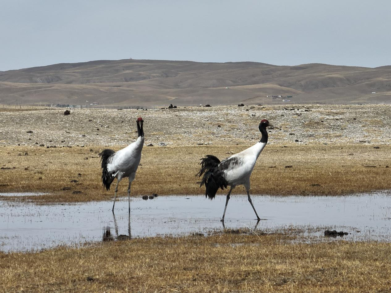 前不久,多杰措毛和同事一道給濕地中的黑頸鶴筑了巢。“黑頸鶴很謹慎,我們筑巢時,它就在遠處注視著我們。”如今,他們所筑的其中一個巢中,已有兩只黑頸鶴寶寶誕生,這讓多杰措毛心中又多了件記掛的事。
