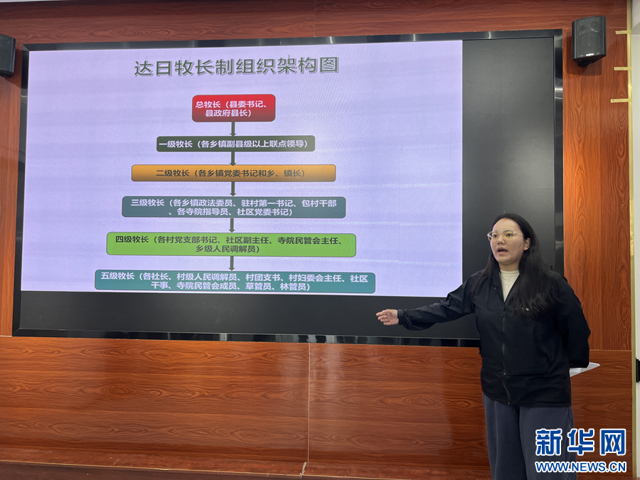 達日縣牧長制組織構架圖。新華網(wǎng) 魚昊 攝