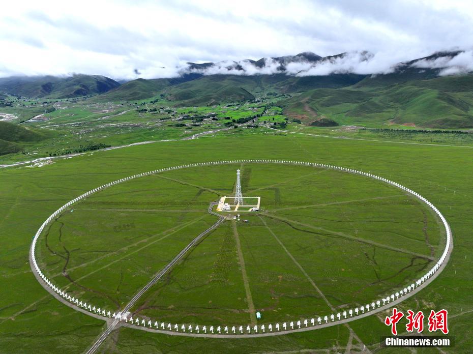 7月22日,四川稻城縣,草原花海中的天線矩陣。中新社記者 劉忠俊 攝
