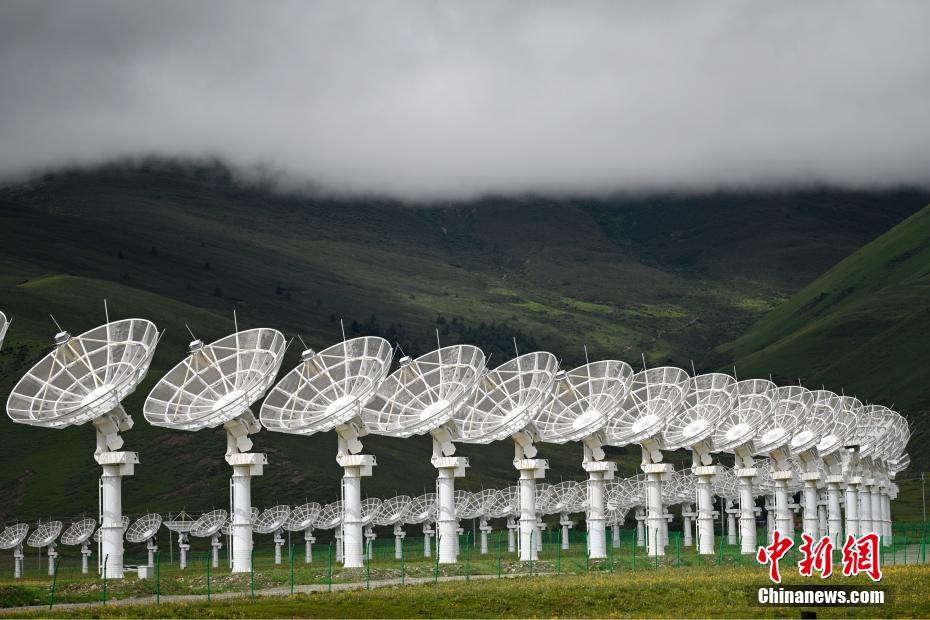 7月22日,四川稻城縣,草原上有序排列的天線。中新社記者 劉忠俊 攝