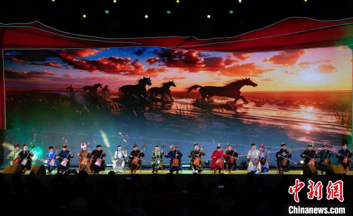 圖為晚會現(xiàn)場進行馬頭琴表演。中新社記者 馬銘言 攝
