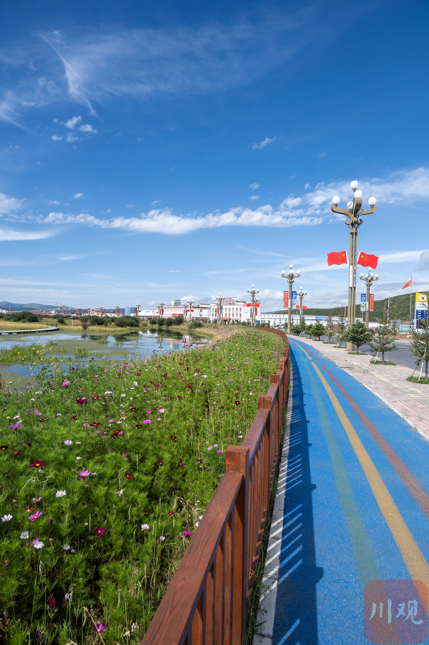 8月18日,天空高遠(yuǎn),風(fēng)光旖旎,國道旁的四川省阿壩藏族羌族自治州紅原縣邛溪鎮(zhèn)熱坤村的邛溪濕地公園已成為眾多游客的熱門打卡點(diǎn)。