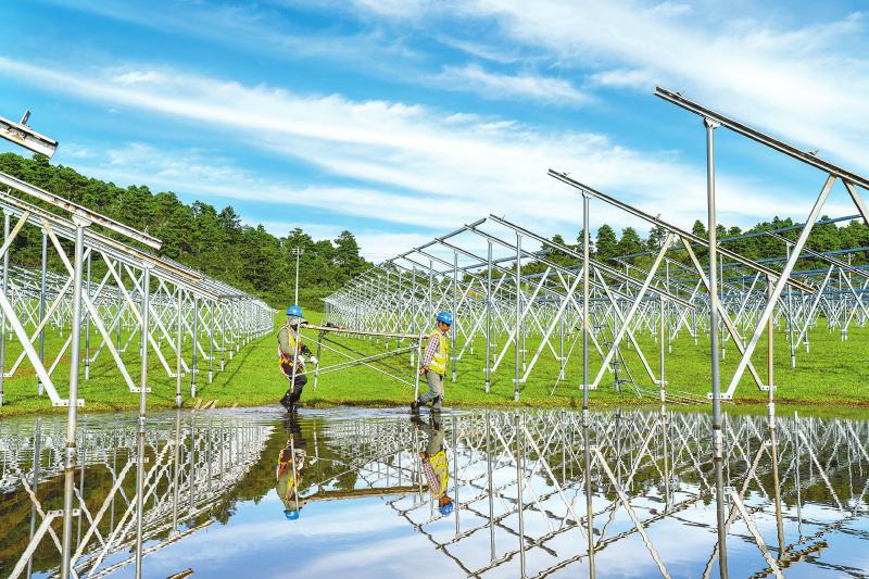 扎拉山光伏電站開(kāi)展支架安裝,該項(xiàng)目是雅礱江流域在建規(guī)模最大的新能源項(xiàng)目。謝剛 攝
