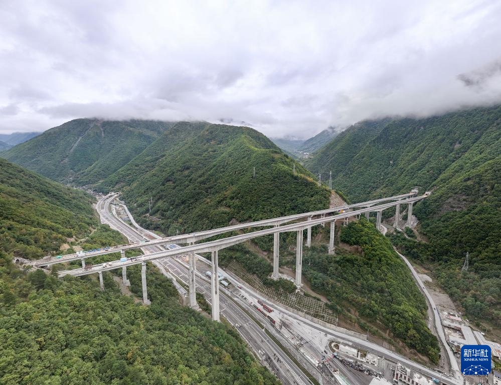 這是10月11日拍攝的正在建設(shè)中的九寨溝—綿陽(yáng)高速公路(無(wú)人機(jī)照片)。九綿高速開(kāi)通后,從成都至九寨溝縣的時(shí)間將從原來(lái)的8小時(shí)縮短至4小時(shí)。新華社記者 王曦 攝