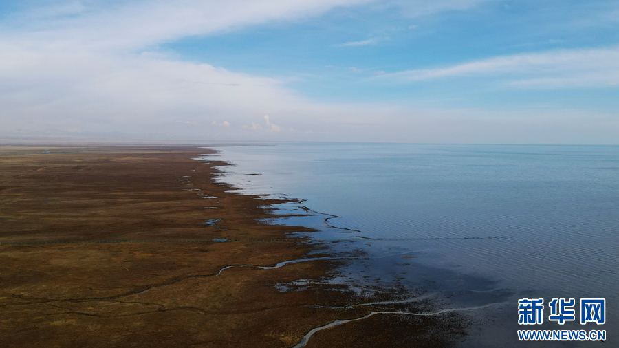 航拍青海湖仙女灣濕地。新華網 卡婭梅朵 攝