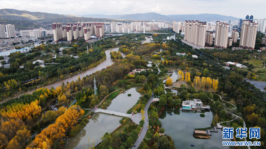 航拍青海西寧湟水國家濕地公園。新華網 卡婭梅朵 攝