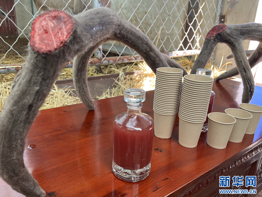 鹿茸和鹿血酒。新華網(wǎng) 魚昊 攝