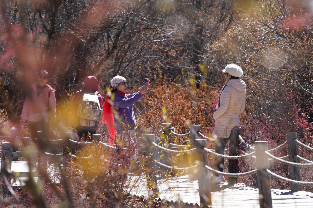 10月31日,游客在四川省甘孜藏族自治州稻城亞丁景區(qū)內(nèi)拍照。新華社記者 胥冰潔 攝