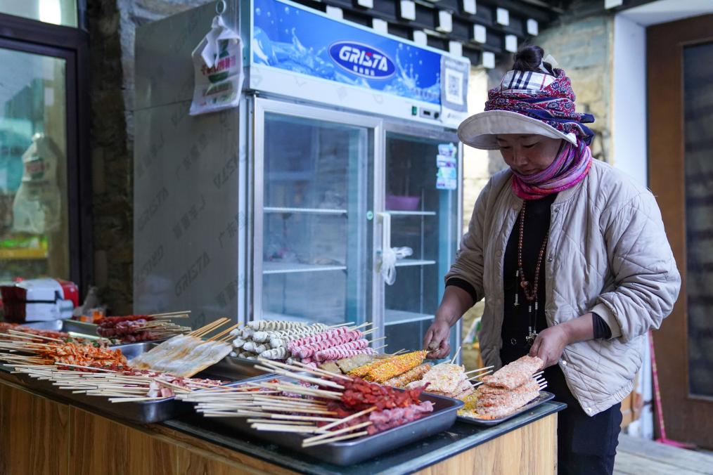 10月31日,在四川省甘孜藏族自治州稻城亞丁景區(qū)內(nèi)的亞丁村,民宿工作人員為游客準備晚飯。新華社記者 胥冰潔 攝