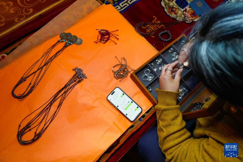 達瓦卓瑪在整理準備要寄出的訂單貨品(11月3日攝)。新華社記者 沈伯韓 攝