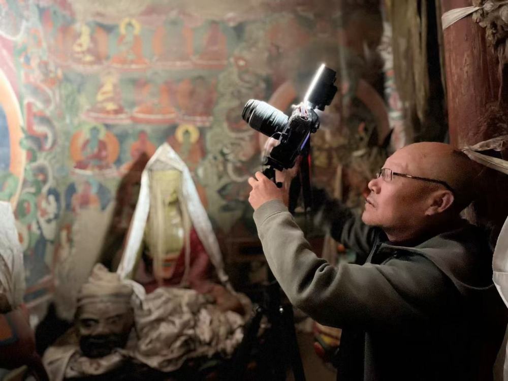 2024年7月,范久輝在德格措充寺拍攝壁畫(huà)。受訪者供圖