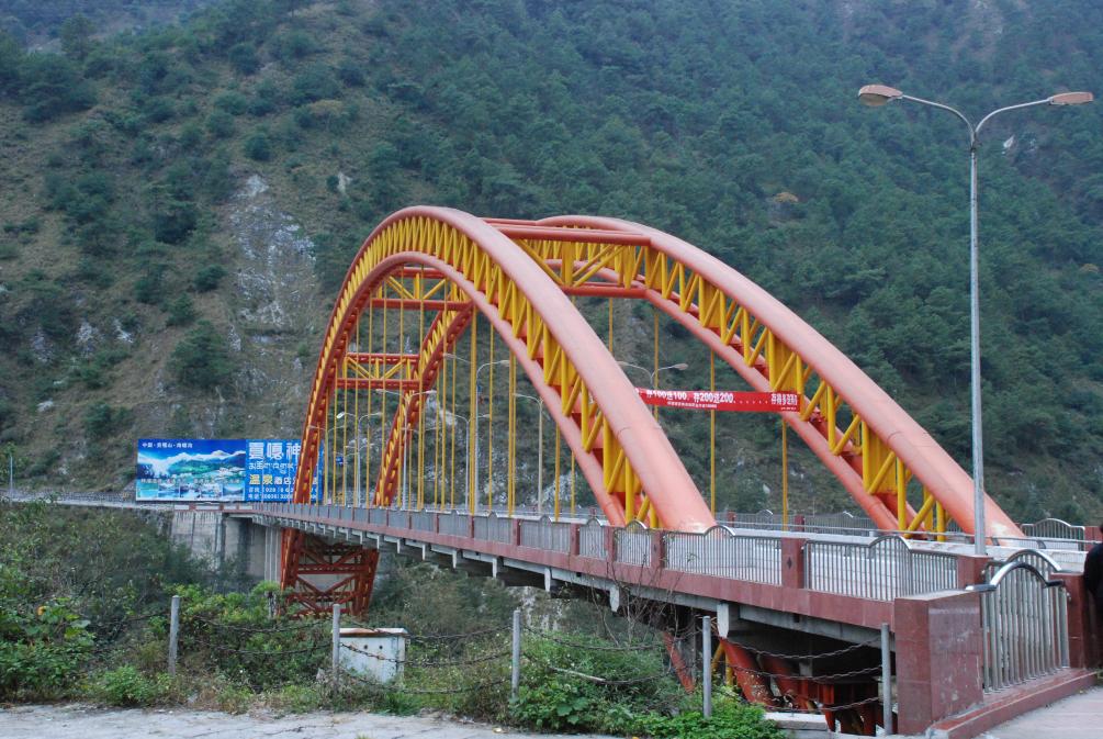 瀘定橋下游,2000年1月建成通車的大渡河大橋,是瀘定縣通往海螺溝景區(qū)的重要橋梁之一。該橋橫跨大渡河?xùn)|西兩岸,如今依然是瀘定縣南部對外交通的重要節(jié)點,為促進民族地區(qū)經(jīng)濟社會發(fā)展發(fā)揮了重要作用。