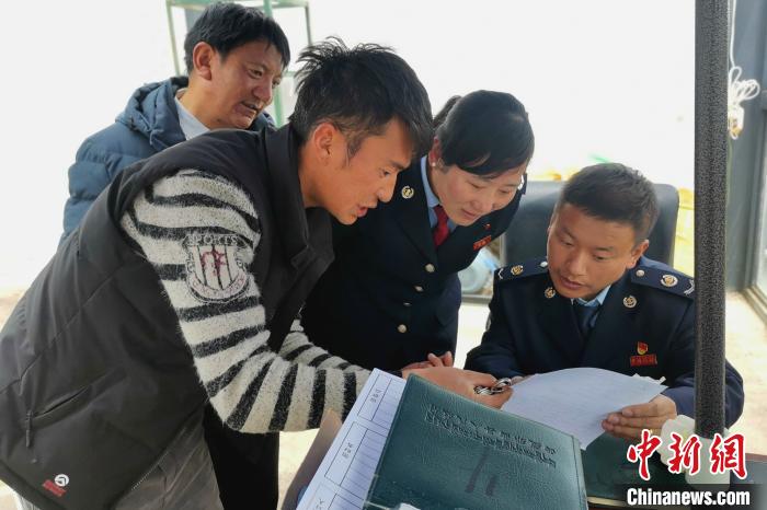 圖為那曲市色尼區(qū)稅務工作人員到當?shù)剞r牧企業(yè)了解企業(yè)信息。國家稅務總局那曲市色尼區(qū)稅務局 供圖