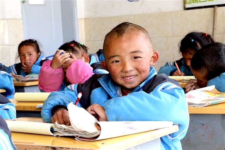 強(qiáng)就的兒子在寬敞明亮的教室里學(xué)習(xí)。