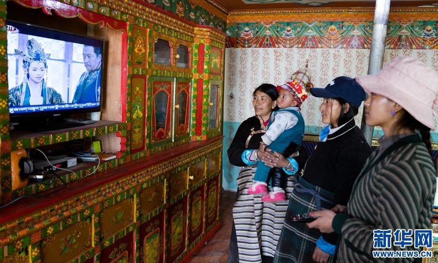 在西藏山南市浪卡子縣普瑪江塘鄉(xiāng),群眾在家中觀看電視節(jié)目(2020年4月15日攝)。新華社記者 普布扎西攝