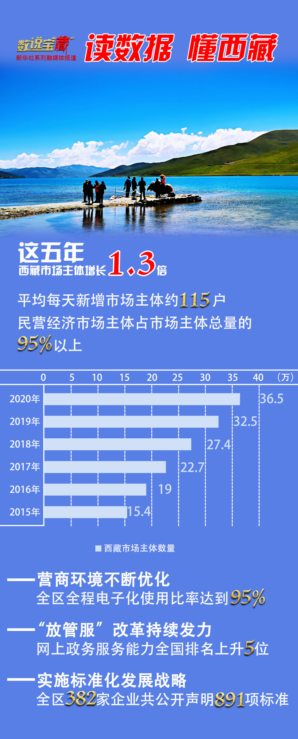 “十三五”期間,西藏市場主體活力不斷被激發(fā),群眾創(chuàng)業(yè)辦事便利度、滿意度顯著提升。西藏自治區(qū)政府統(tǒng)計數(shù)據(jù)顯示,目前西藏市場主體數(shù)量已達36.5萬戶,較“十二五”末增長了1.3倍,5年來平均每天新增市場主體約115戶。