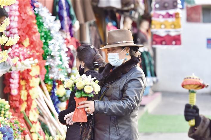 “羅薩梅朵一把5元,都是自家制作的?!?6日,記者在拉薩市八廓商城看到,一處攤位上整齊地擺放著羅薩梅朵,不時有顧客前來詢價挑選。