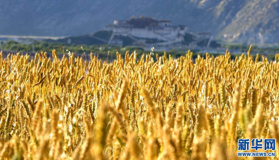 拉薩布達(dá)拉宮對面的金色麥田(2009年8月21日攝)。新華社記者 普布扎西 攝