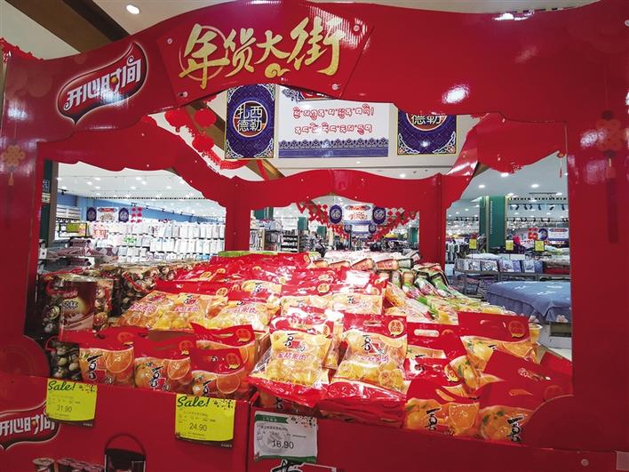 隨后,記者來到娘熱路的哈達(dá)購物廣場,超市里掛起的大紅燈籠和播放的“恭喜發(fā)財(cái)”、“歡樂過大年”等音樂,給商場增添了不少喜慶,而來這里采購年貨的人也不少!過年備什么年貨,吃什么好吃的,這是大家最為關(guān)心的事情。記者看到,超市里堆滿了各種各樣的零食大禮包、糖果、飲料。除了零食糖果,風(fēng)干肉、香腸、臘肉等這些過年餐桌上必不可少的年味,早已經(jīng)放上貨架等待市民選購。