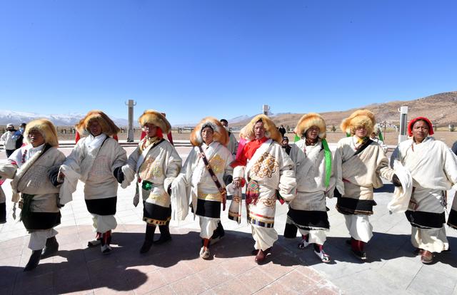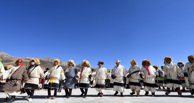 2月12日,拉薩市當(dāng)雄縣牧民跳起鍋莊舞。新華社記者 覺(jué)果 攝