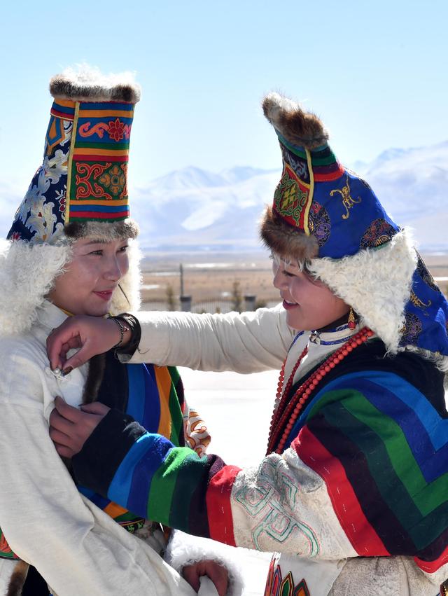 2月12日拍攝的著盛裝的拉薩市當(dāng)雄縣藏族牧民。新華社記者 覺(jué)果 攝