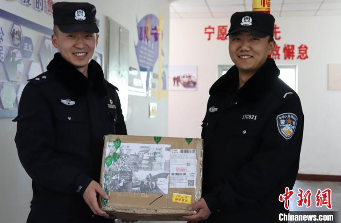 圖為民警們拿到包裹時(shí)格外開心。劉志武 攝