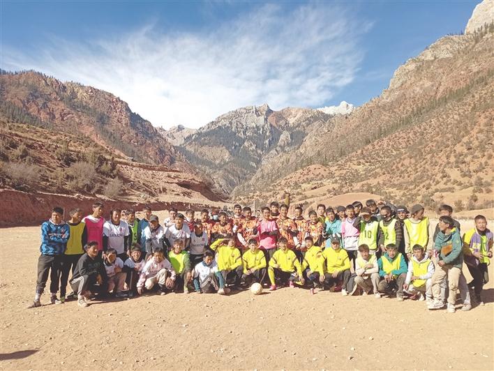 圖為寒假期間昌都市洛隆縣馬利鎮(zhèn)瓦河村的“足球小子”合影。(圖片由南加巴鄧提供)