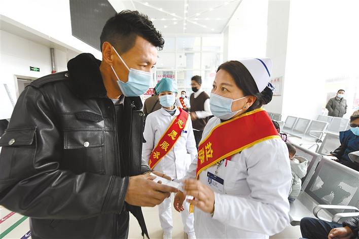 圖為拉薩市人民醫(yī)院醫(yī)護(hù)人員為前來就診的患者服務(wù)