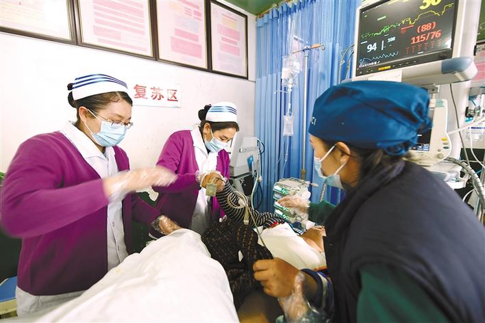 圖為自治區(qū)人民醫(yī)院護(hù)理部護(hù)士查看病人情況