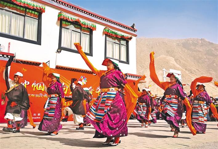 圖為森布日極高海拔搬遷群眾慶?!叭恕眿D女節(jié)