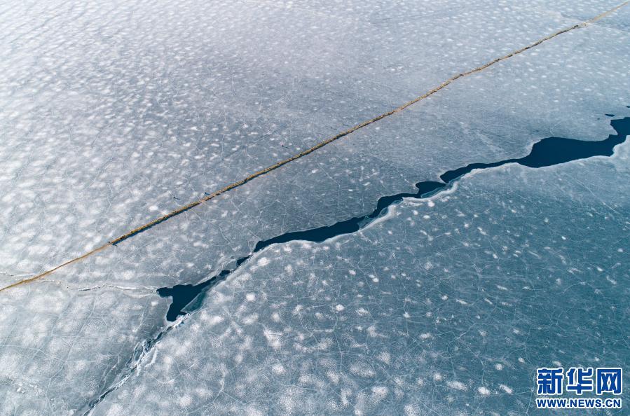 2000多只羊,在冰湖上如一條長長的線,緩緩前行……