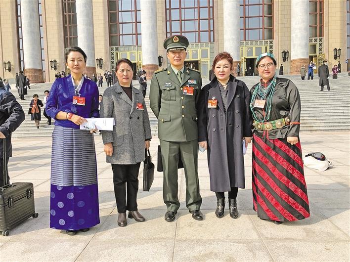 圖為住藏全國政協(xié)委員在會場外合影。記者 李洲 特約記者 旦增赤列 攝