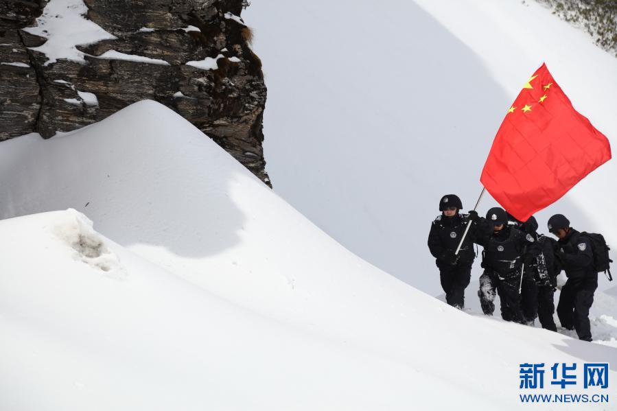 楊帆等5位警察正在乃堆拉巡邏(2021年3月19日攝) 新華社發(fā) 張雨強(qiáng)攝