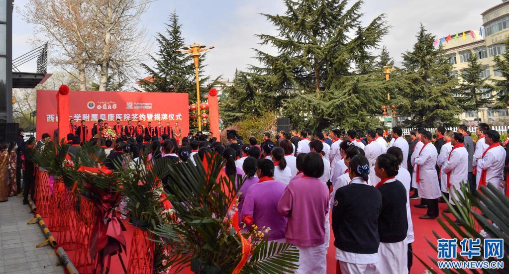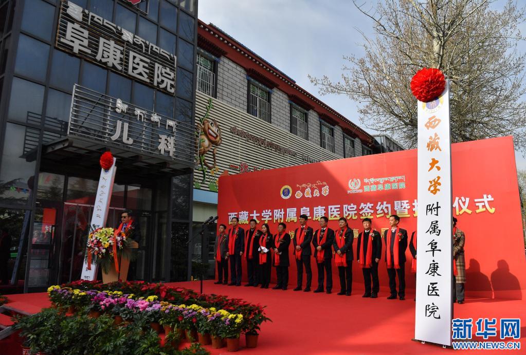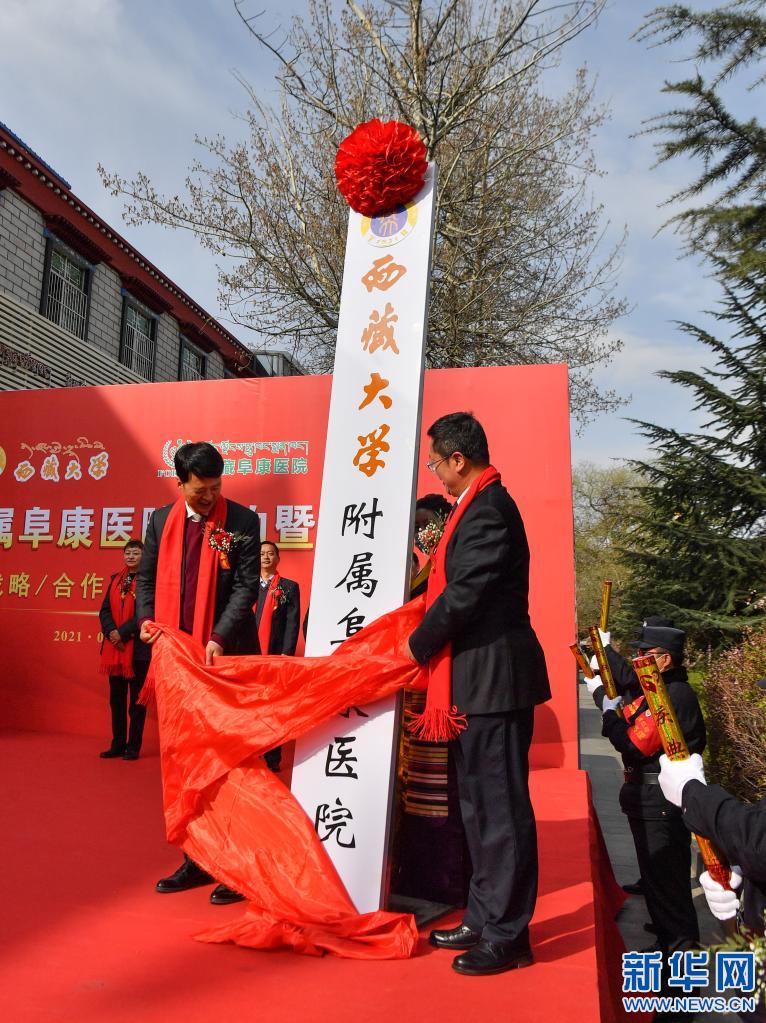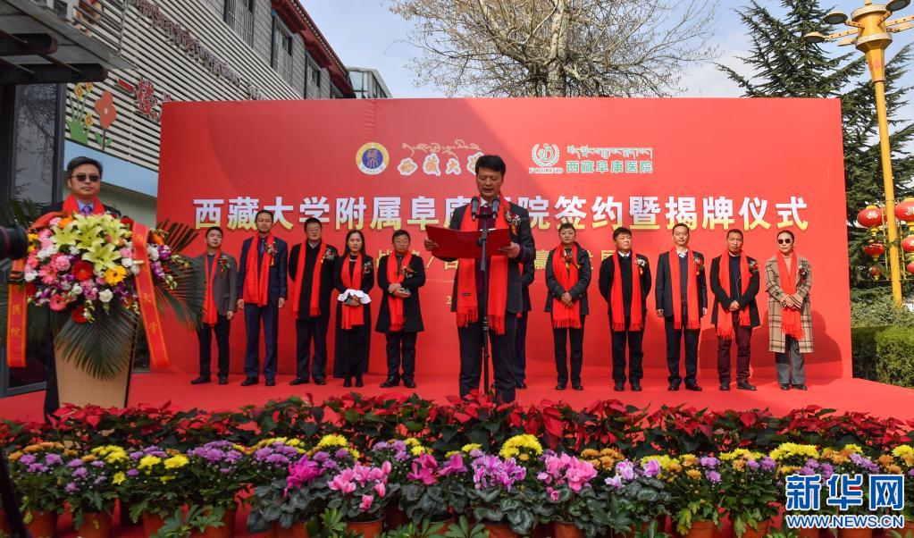 西藏大學附屬阜康醫(yī)院簽約暨揭牌儀式現場(4月7日攝)。