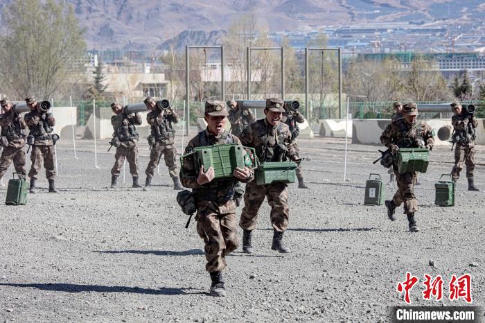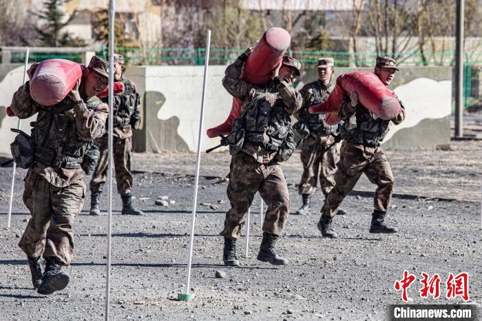 圖為西藏軍區(qū)某旅新兵扛著模擬“傷員”進(jìn)行戰(zhàn)場搬運(yùn)考核。西藏軍區(qū)某旅 攝