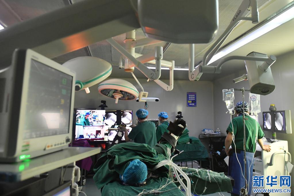 4月19日,拉薩市人民醫(yī)院骨科醫(yī)生在北京積水潭醫(yī)院專家遠(yuǎn)程指導(dǎo)下使用骨科機(jī)器人開展骨科手術(shù)。新華社記者 孫瑞博 攝