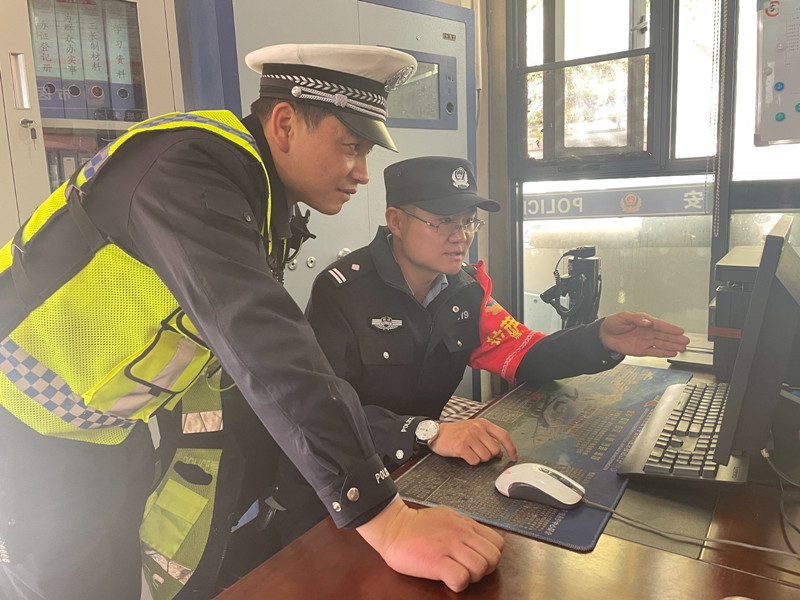 交警和警務(wù)站民警通過(guò)視頻巡查路面車輛通行情況。