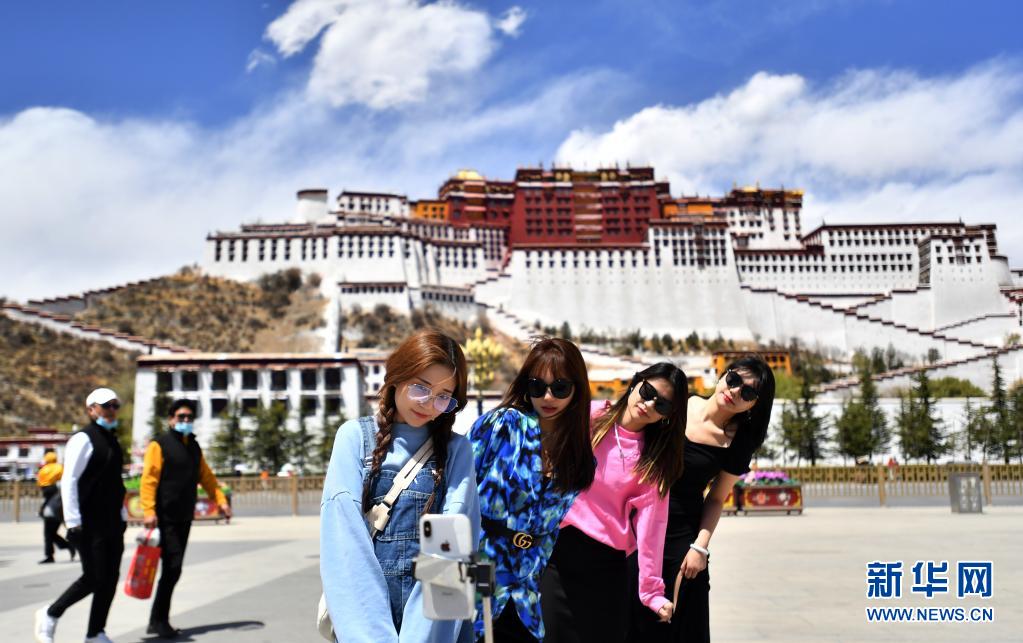 4月23日,來自重慶的游客在布達(dá)拉宮廣場留影。新華社記者 覺果 攝