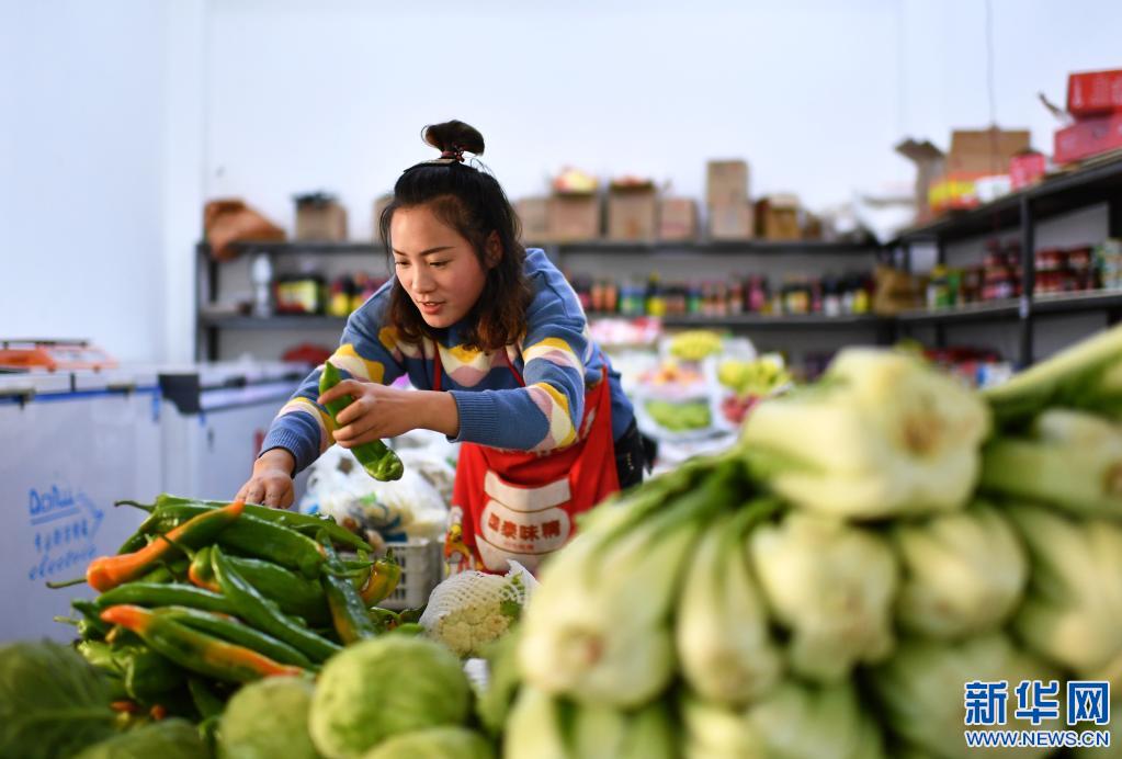 在西藏丁青縣尺牘鎮(zhèn)農(nóng)貿(mào)市場(chǎng),商販在整理蔬菜(2020年9月18日攝)。 新華社記者 詹彥 攝