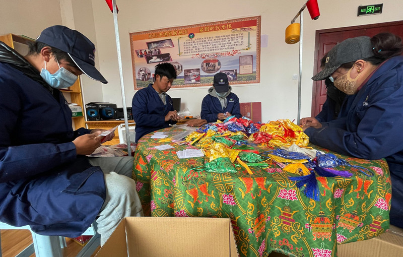 圖為洛隆縣嘉薩藏香制作廠的工作人員在制作藏香包。記者 次旺 唐斌 攝