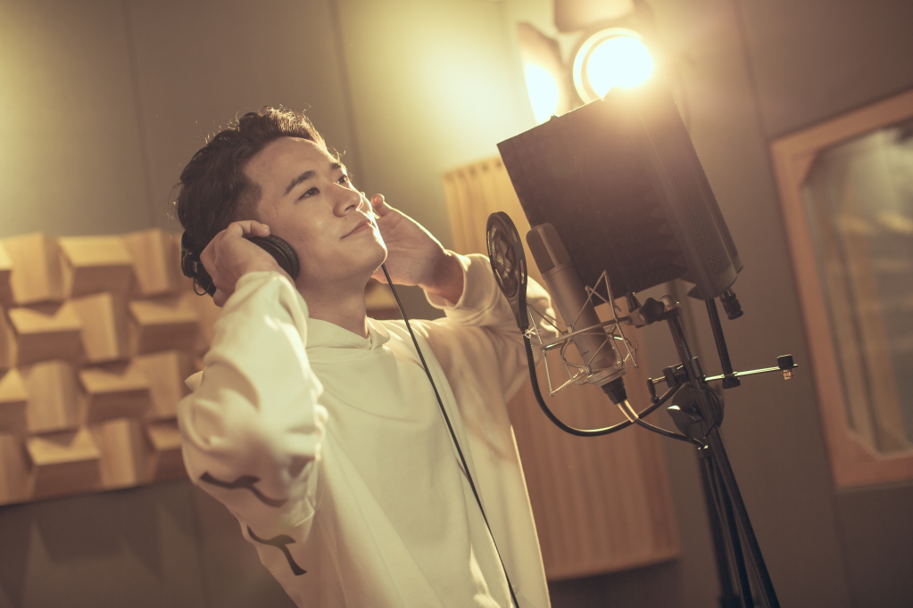 巴鄧頓珠在錄音棚錄制歌曲。新華社發(fā) (受采訪者供圖)