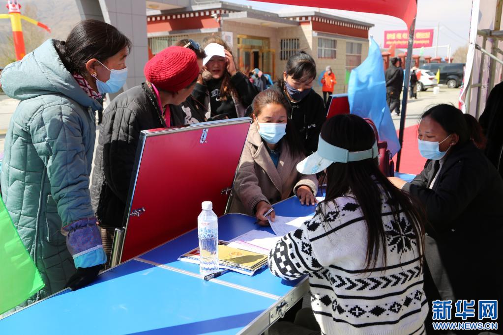 西藏農(nóng)牧民在瓊結縣產(chǎn)業(yè)園參加“春風行動”招聘會。