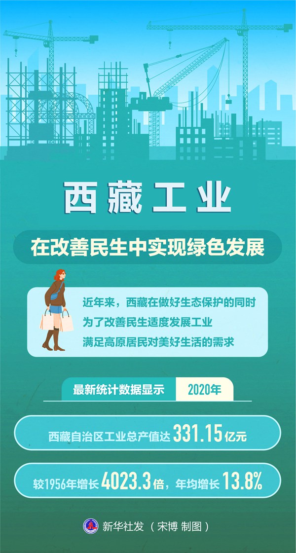 近年來,西藏在做好生態(tài)保護的同時,為了改善民生適度發(fā)展工業(yè),滿足高原居民對美好生活的需求。最新統(tǒng)計數(shù)據(jù)顯示,2020年,西藏自治區(qū)工業(yè)總產(chǎn)值達331.15億元,較1956年增長4023.3倍,年均增長13.8%。
