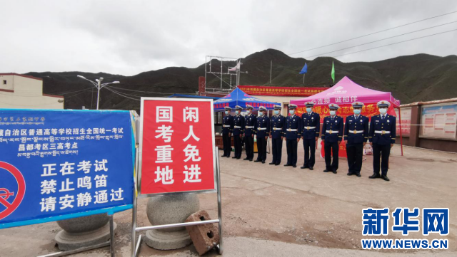 消防員在西藏昌都市卡若區(qū)高考考點維持秩序(6月8日攝)。新華網(wǎng)發(fā) 洛松旺修攝