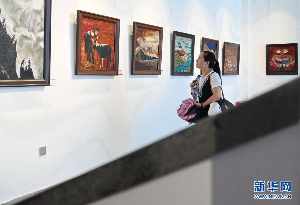 6月12日,市民在福州三坊七巷參觀唐卡漆畫。新華社記者林善傳攝