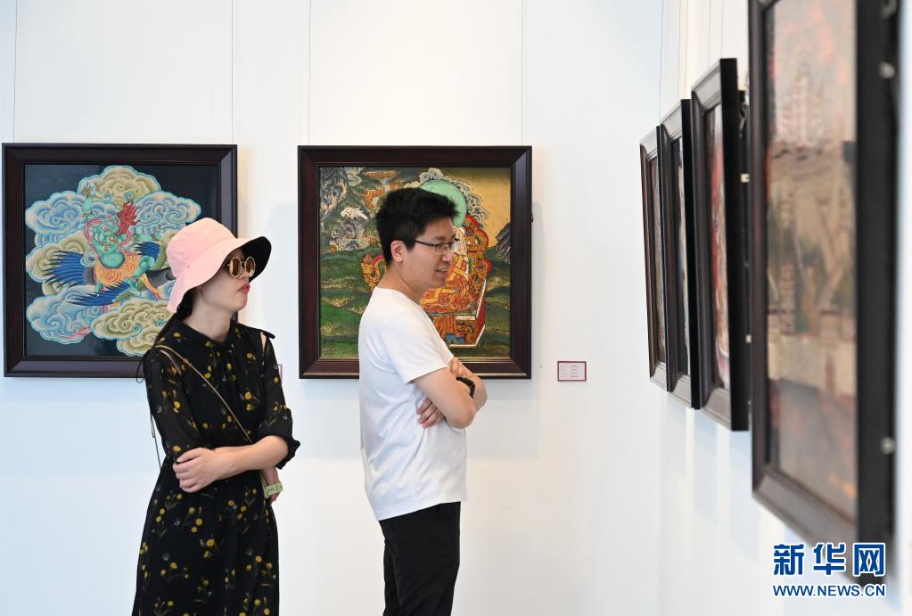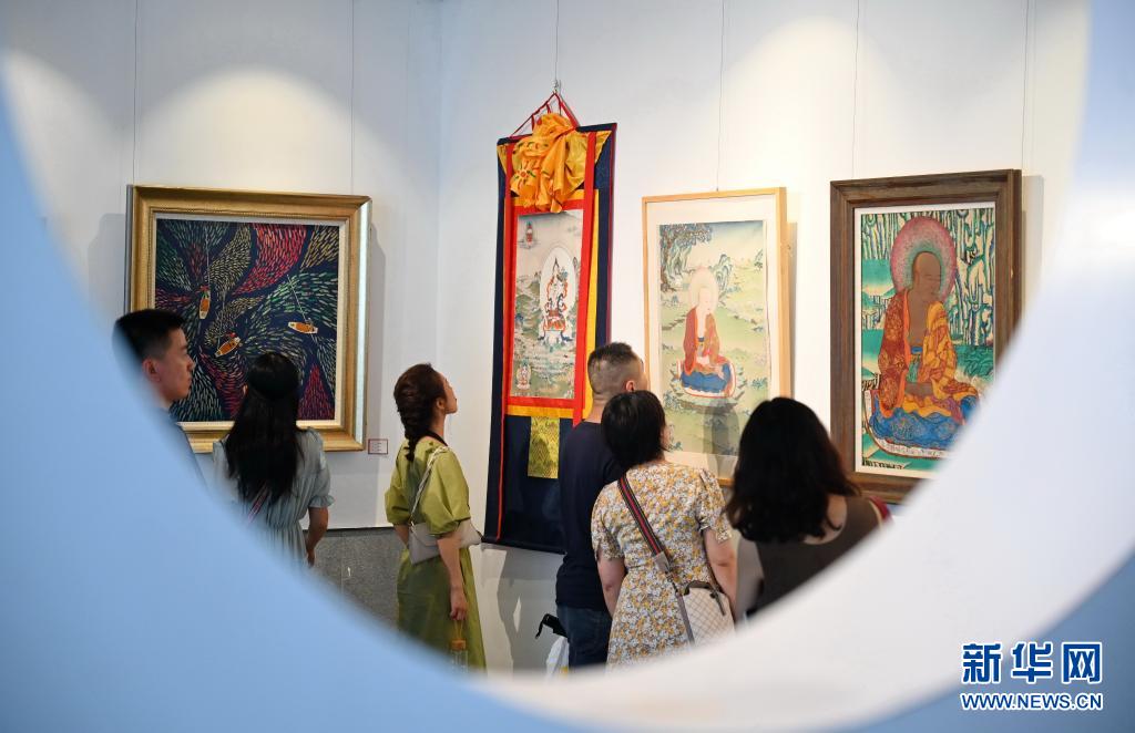 6月12日,市民在福州三坊七巷參觀唐卡漆畫和唐卡等。新華社記者 林善傳 攝